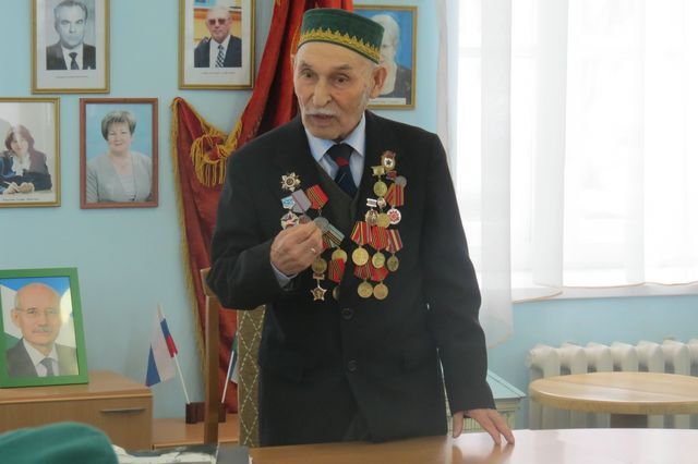 Затем в музее гимназии Кашфелгилем Файрушевич рассказал мальчишкам и девчонкам об участии в битве за Сталинград, поделился своими воспоминаниями.