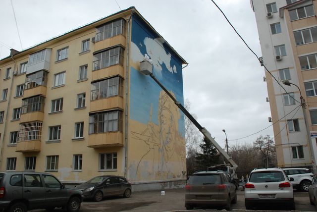 Как рассказал один из художников Олег Кайбышев, работа будет закончена до празднования юбилея Победы. Портрет легендарного летчика появится на фасаде пятиэтажки на фоне штурмовика Ил-2 и цифры «70», выложенной маленькими самолетиками.
