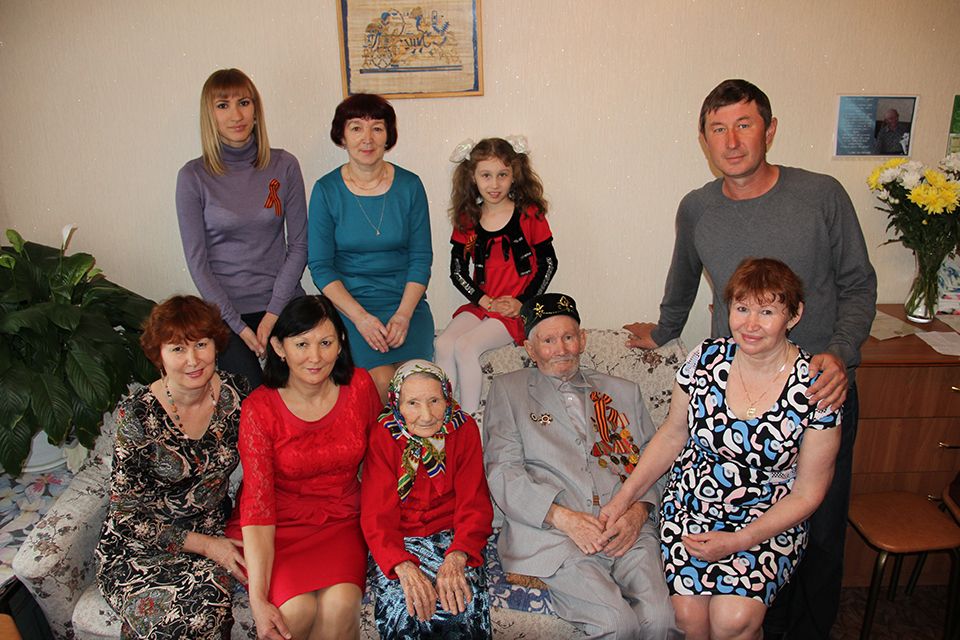 Мунавер Мухаметшиевич родился в 1923 году в Туймазинском районе Башкортостана. В шесть лет остался без родителей и переехал жить к тете в Туркменистан. Оттуда в 17 лет, скрыв свой настоящий возраст, ушел на фронт в пехотные войска. Воевал в Калининском направлении – во Ржеве, Калинине (ныне Тверь). Говорит, что страха в то время уже не знал. Во время войны он получил контузию - две пули вошли в голову, ранило и правую руку - пришлось заново учиться писать левой. После войны Мунавер Мухаметшиевич вернулся в Туркмению, женился. С Марьям Закировной они живут душа в душу уже 68 лет. У них семеро детей, 14 внуков и 10 правнуков!